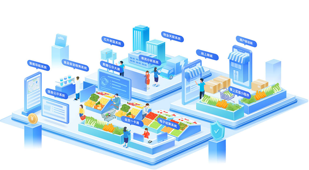大連金馬衡器有限公司智慧農貿云服務平臺,集農產品生產管理系統(生產加工)、農產品集運(運輸)、物流中心(農貿市場)、智慧農貿系統、網上商城、農貿運營管理、智慧檢測監管、消費者追溯系統、大數據分析等系統開發及軟硬件定制于一體的智能農產品流通的貿易服務平臺。